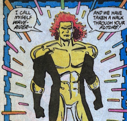 11. [11]COLLIN COLSHER: Armageddon 2001 (published and originally set in 1991) was entitled as such because the Monarch turns on his fellow heroes in the year 2001. However, after Zero Hour sliding-time, the Monarch turns on his fellow heroes in 2012. Therefore, we should really re-think of Armageddon 2001 as Armageddon 2012. Alternatively, although this is just a bit of luck, we could view the “2001” in the title as a reference to where we currently are on our time-slid chronology. Yes, Waverider has chosen to conduct his investigation in the year 2001.