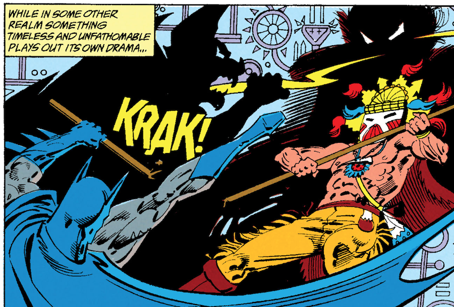 5. [5]COLLIN COLSHER: In 1991, Cary Bates and Greg Weisman had been interchangeably using Death of the Endless and Black Racer as DC’s aspects of Death. However, Bates and Weisman were ignoring the fact that Neil Gaiman had already arranged with DC higher-ups for Death of the Endless (his character) to be the one sole Death, above all others. (Death of the Endless isn’t an aspect of Death. She literally is Death.) As such, the inclusion of Black Racer here could very well be a continuity error, meaning that Bates and Weisman should have used Death of the Endless instead and that Henirich Megala truly has nothing at all to do with the New Gods. In my personal headcanon, Megala is affiliated with the New Gods, but this is just me having fun with the situation.
