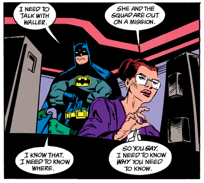 19. [19]BARDIA: Batman/Green Arrow: The Poison Tomorrow goes here for a couple reasons. First, it should be in close proximity to other stories published in 1992. Second, it should go after Poison Ivy is no longer with the Suicide Squad. Poison Ivy is with the Suicide Squad for about six months of in-story time—from Suicide Squad #33 (1989) to Suicide Squad #66 (1992) in real world publication duration. The latter Batman-less issue, in which Amanda Waller shuts down Task Force X, occurs shortly before this juncture on our timeline.